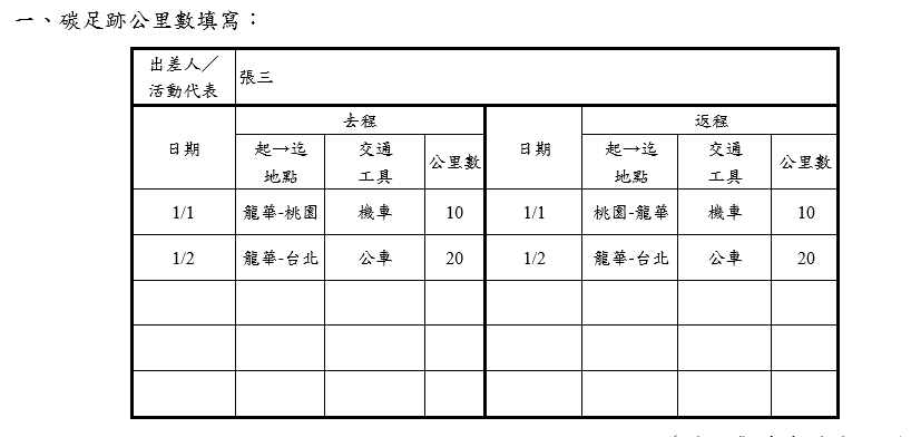 龍華科技大學碳盤查作業-交通碳足跡表單